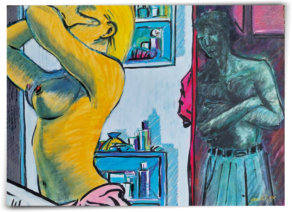 La toilette Format : 70x100 cm (support) Technique : Mixte (craies grasses, encre de chine, cirage) Support : carte parcheminée 300g Reproduction : 50x70 cm ou 30x40 cm, couché satin 250g (sur commande)