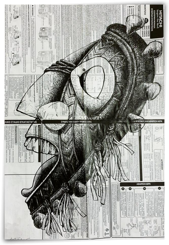 celui qi kri Il parle fort alors il crie. Si personne ne lui répond, il continuera a crier. Mais peut-être est-il sourd… Format : 57x 77 cm (cadre) Technique : Encre Support : Notice technique Reproduction : 50x70 cm ou 30x40 cm, couché satin 250g (sur commande)