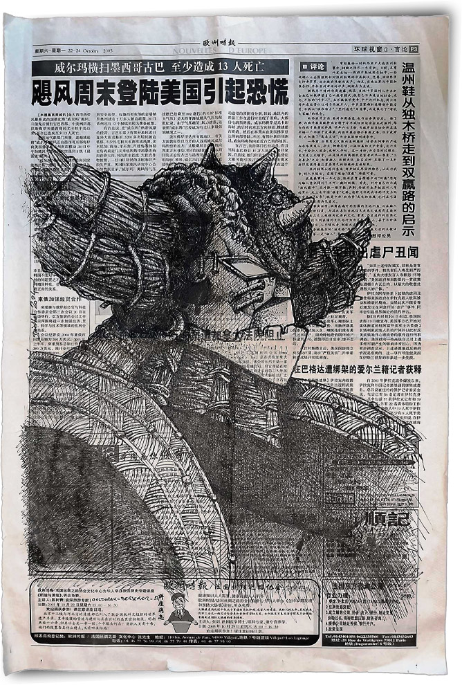 Technique : Encre de chine sur journal chinois